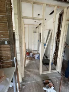 We’re about half way through construction at our Kearny Street renovation. For this project we’re filling in a second floor with additional bedrooms and baths for a family of five. Each of the kids will get their own bedroom and share a common bathroom. The parents bedroom will get a new ensuite bathroom in a corner formerly used as an office. A previously uninsulated attic will receive insulation throughout which will significantly improve performance and comfort. The attic will be initially used for an office, rec room and guest bedroom. Currently walls are all framed and rough-ins are in place, awaiting Insulation installation. Stay tuned for future updates. We should be wrapping up in another month.