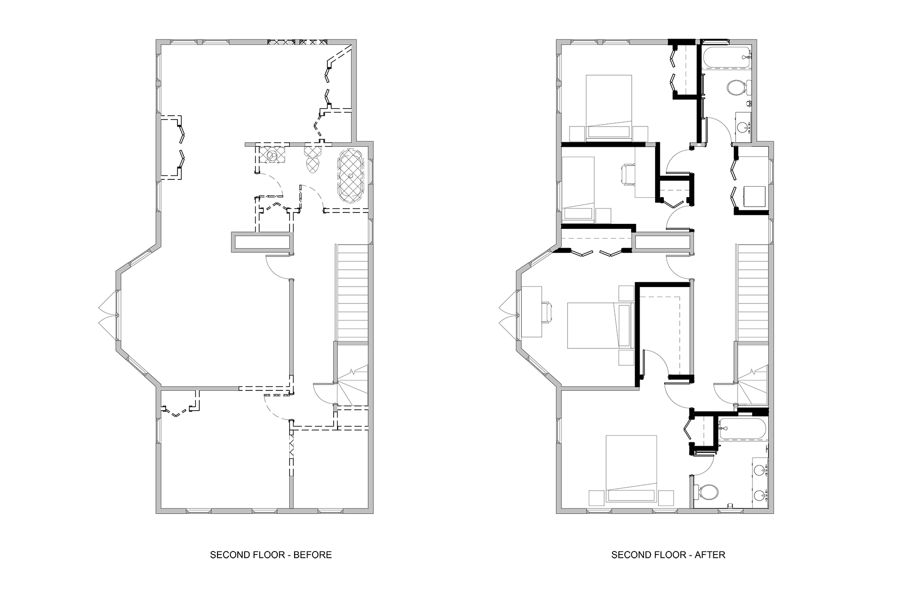 Parent’s bedroom – office replaced with ensuite bath, larger closet added, plumbing routed through old bulkhead