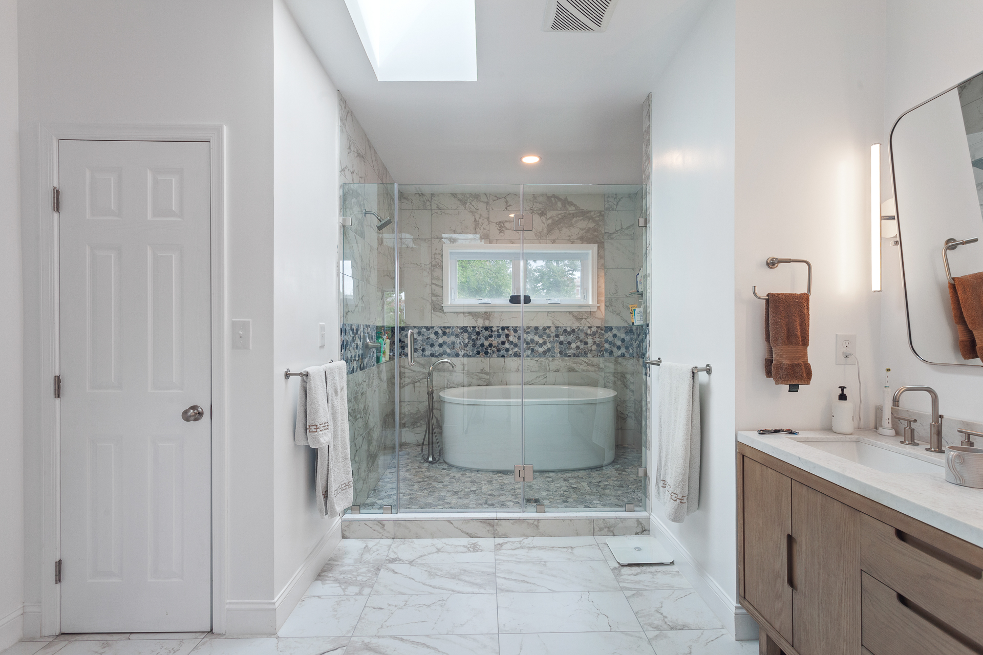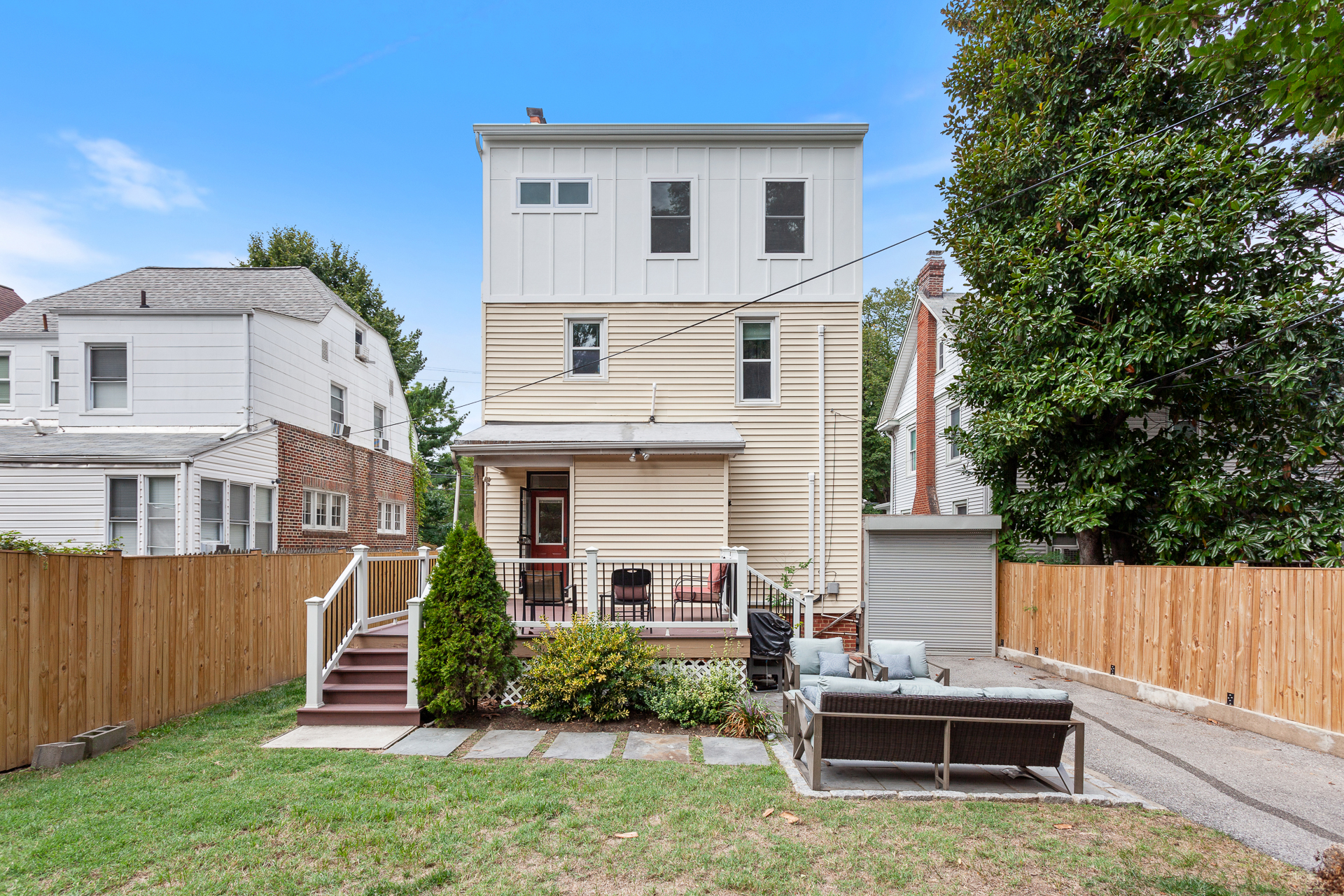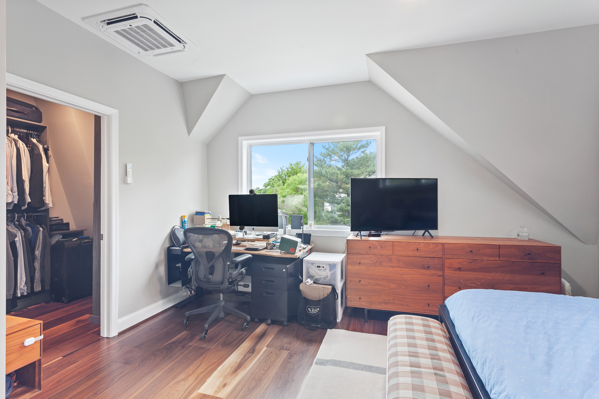 In order to create more space for an expanding family in Brookland, we’re converting an existing attic to a full third floor. The existing attic was significantly under-utilized due to the sloping ceilings. The new floor will replace the entire roof framing with a full floor to provide a new primary suite, including a walk-in closet. The remaining floor space will be used as an open gym space. From the street, the design preserves the original character of the home, keeping the existing front gable as a dormer feature. A complementary vertical siding on the addition helps to harmoniously scale the addition to it’s neighbors.